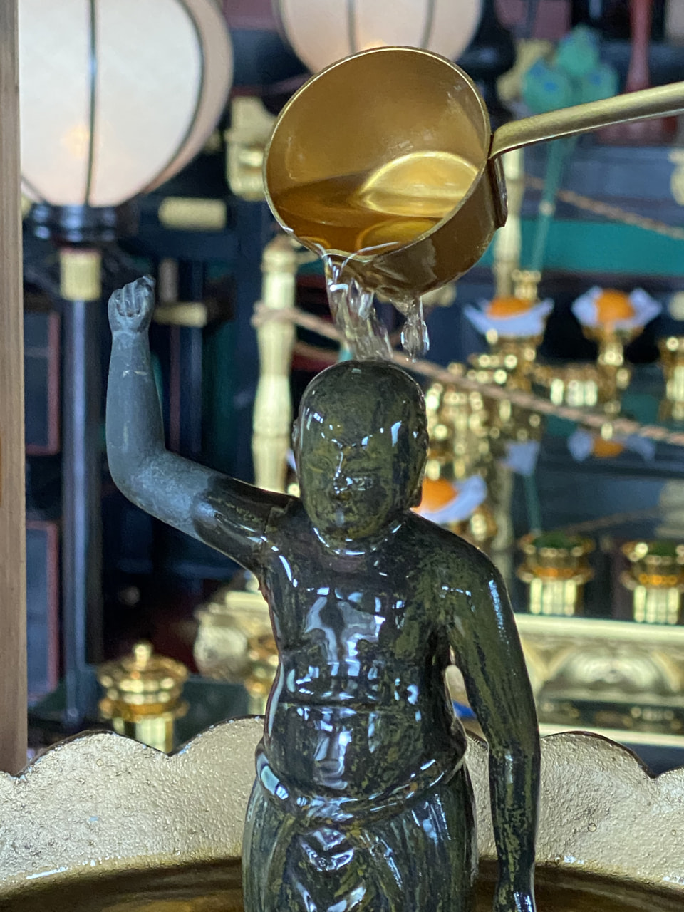 お釈迦さまの誕生仏像をお祀りし、甘茶をそそいでお参りいたします。